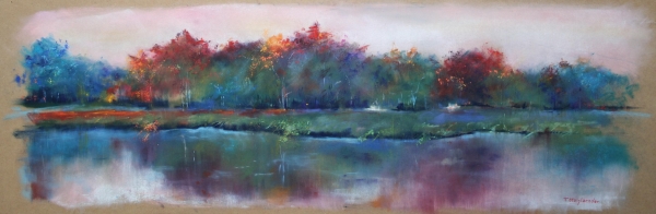 "Plan d'eau Reichshoffen" (90x30cm) - Pastel - Medium Density Fibreboard - 2015 - Oeuvre de Frédéric Steinlaender