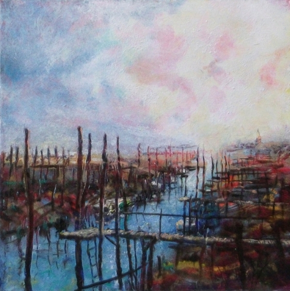 "Chenal à Marennes D'Oleron" (30x30cm) Huile sur toile. Oeuvre de Dany Wattier