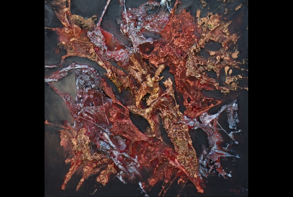 "Mineralis 1" (100x100cm), matières et techniques mixtes sur toile, oeuvre de CAZORLA-CAZO, peintre