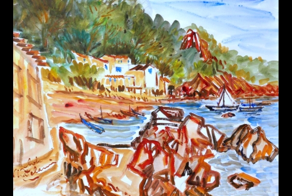 "Le Pin de Galles au Couchant",aquarelle (65x50cm), oeuvre de Bob Chatelain, peintre aquarelliste.