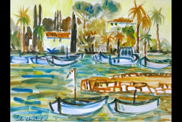 "Les Barques", aquarelle (65x50cm), oeuvre de Bob Chatelain, peintre aquarelliste.
