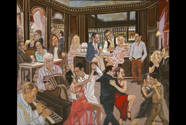 "Le Tango Bar" HST 60 X73cm, oeuvre de William Fenech, peintre lauréat du Palmarès des Trophées des Arts PARIS 2020