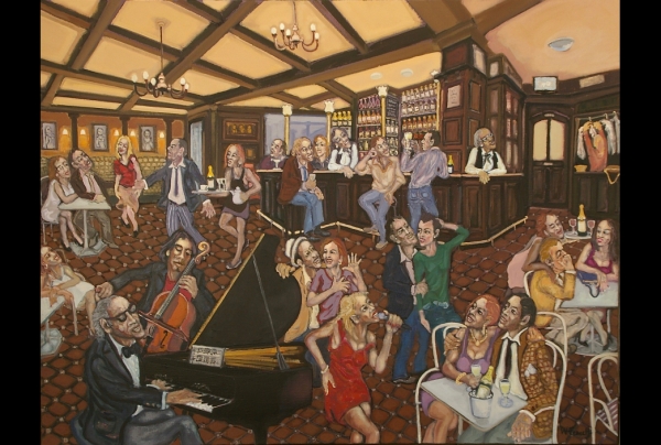 "Happy Club" HST 89 x116cm, oeuvre de William Fenech, peintre, Lauréat du Palmarès des Trophées des Arts PARIS 2020 Capitale internationale des arts et des styles.