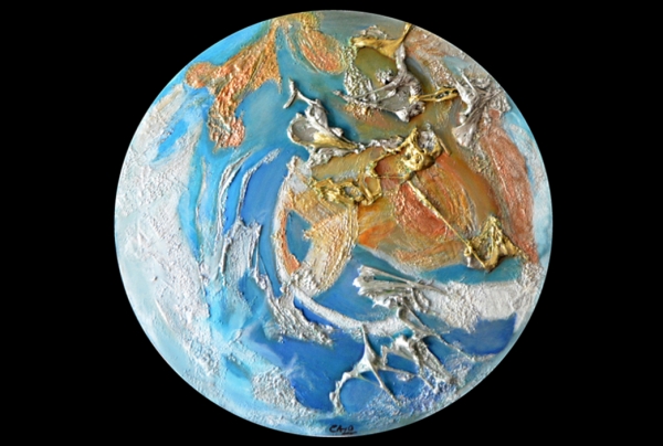 "Genesis De Nocte" Huile et matières sur toile (Diam 70cm) Cazorla-Cazo, peintre contemporain abstrait