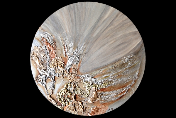 "Numquam Pollutio" Huile et matières sur toile (Diam 90cm) Cazorla-Cazo, peintre contemporain abstrait