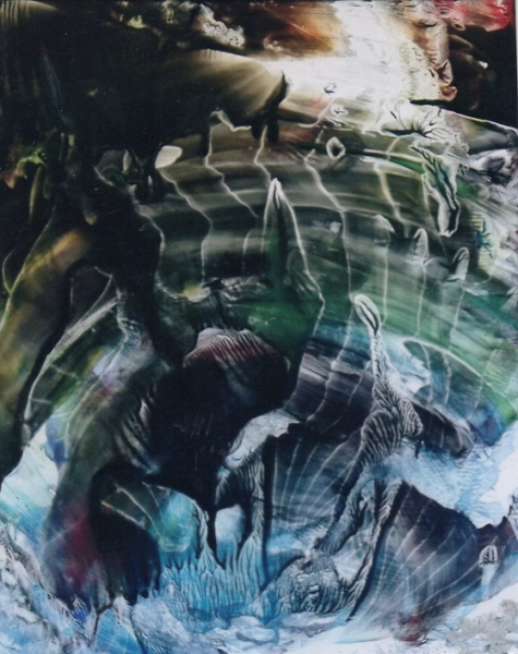 "Grotte Marine" Encres de Chine sur papier (62x45cm), oeuvre de Betty De Rus, peintre abstraite