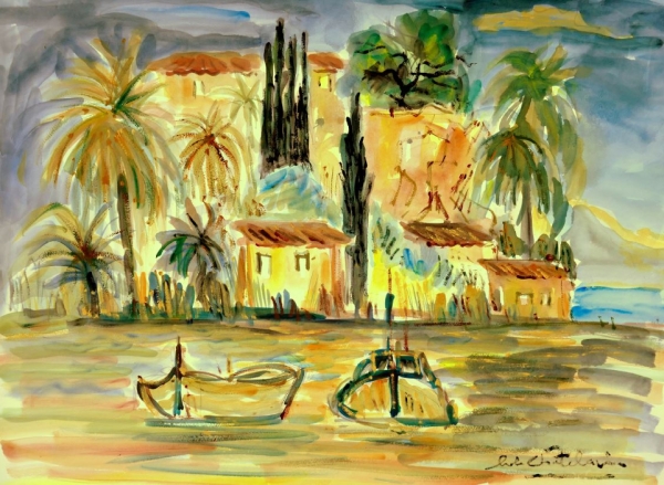 "Couchant Sur la Corniche", aquarelle, (65x50cm), œuvre de Bob Chatelain, peintre, aquarelliste,