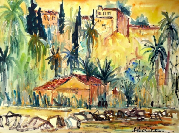 " "La Bastide Valda", aquarelle, (65x50cm), œuvre de Bob Chatelain, peintre, aquarelliste,