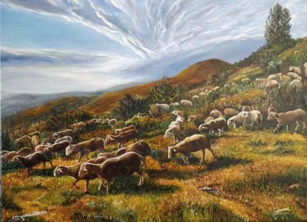 "Transhumance en Cévennes", peinture 81x60cm Acrylique sur châssis lin, œuvre de Frédéric Boirie