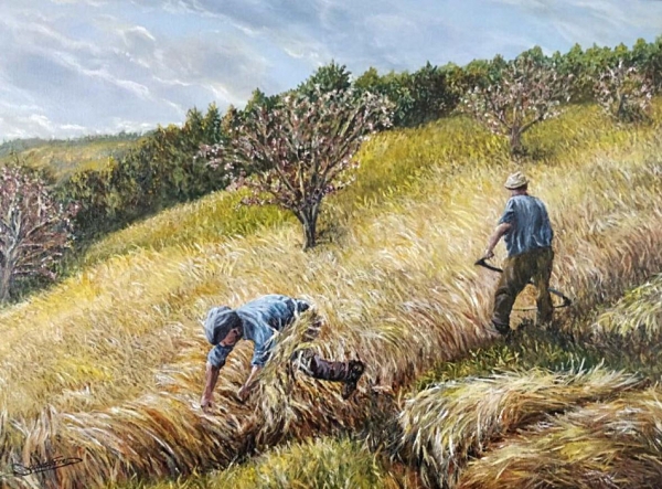 "Les Faucheurs d'Ardèche", peinture 81x60cm Acrylique sur châssis lin, œuvre de Frédéric Boirie