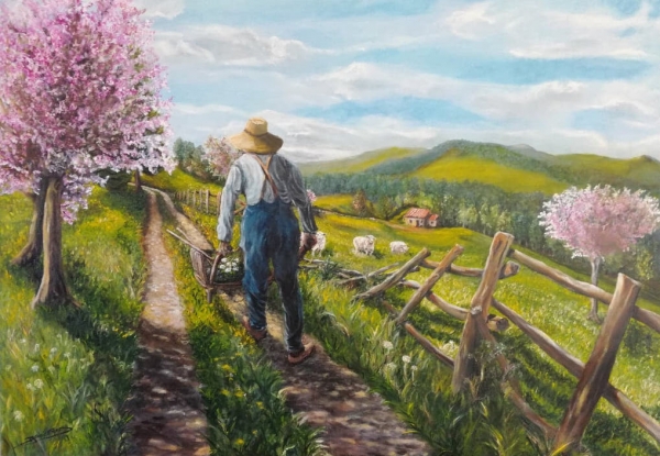 "La Vie de Campagne", peinture 100x75cm Acrylique sur châssis lin, œuvre de Frédéric Boirie