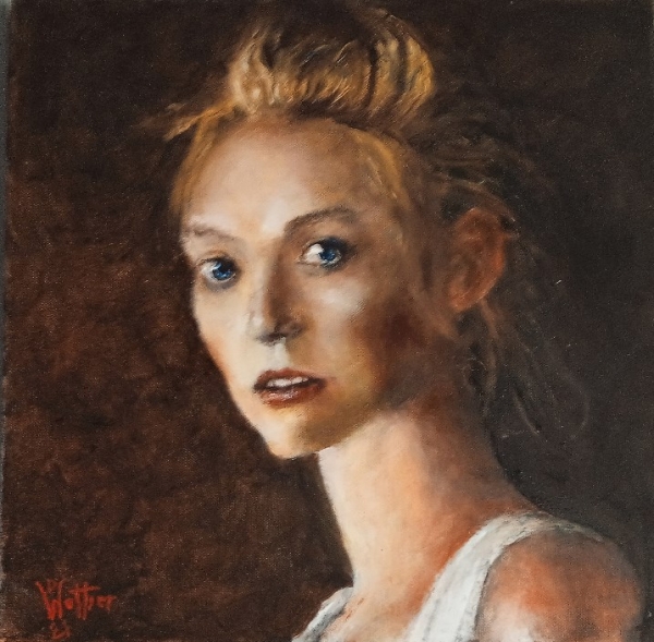 "Regard", huile sur toile, 40 cm x 40 cm, 2021. Dany WATTIER, peintre