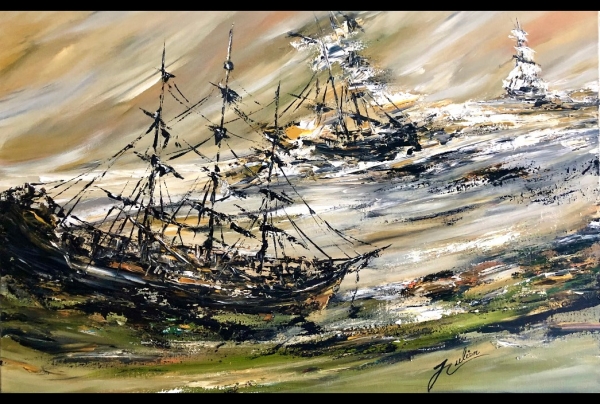 "La Frontière du Temps" 24 x 36, année 2021, acrylique, oeuvre de Louis Julien Artiste peintre, Grand Trophée du Style, Lauréat du Palmarès, lors de l'Evénementiel concours de la 2EME Journée Mondiale des Styles Artistiques 2023 en France