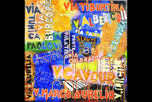 ""Rome" (collection "Les Capitales") huile sur toile 100x100cm. Oeuvre abstraite de Gérard Suissia, Trophée Abstraction. 2EME Journée Mondiale des Styles Artistiques 02 07 2023