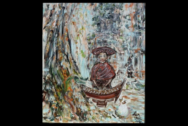 "Paradis Perdu" - Angkor, dimensions 46x38 cm, huile sur toile 2023, oeuvre de Lin Qiu Bertalan, artiste peintre