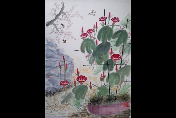 "Volubilis" (80 x 60 cm) Papier de riz. Peinture calligraphique chinoise, oeuvre de l'artiste Sylviane LEBLOND peintre