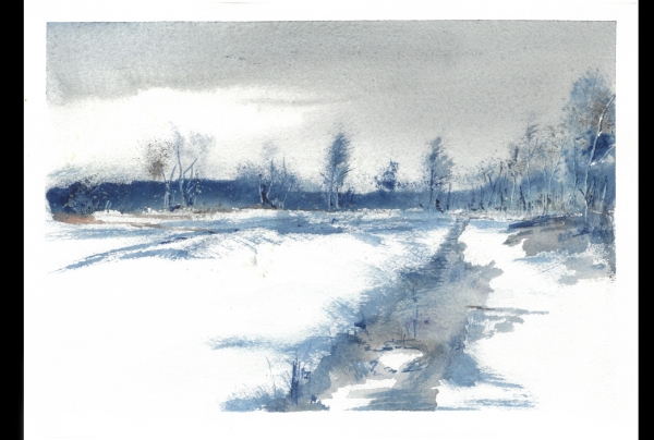 "C'est l'Hiver" Aquarelle (26x18cm). Oeuvre de Frédéric Steinlaender, Artiste peintre, Aquarelliste.