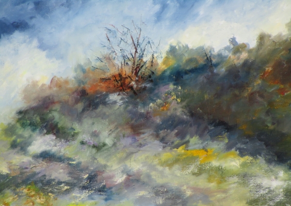 "Matin Frais", peinture, (dim.116x89cm). Huile sur toile, brosse, couteau. Paysage. Œuvre de Michel SKUPIEN, artiste-peintre, Lauréat du Palmarès. Trophée Européen des Arts et Styles 2024.