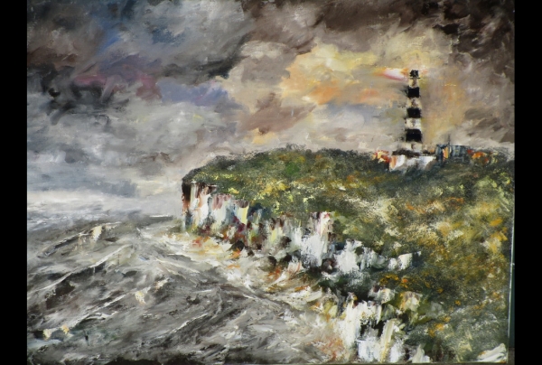 "Chassiron d'Oléron" peinture, (dim.116x89cm). Huile sur toile, brosse, couteau. Paysage. Œuvre de Michel SKUPIEN, artiste-peintre, Lauréat du Palmarès. Trophée Européen des Arts et Styles 2024.