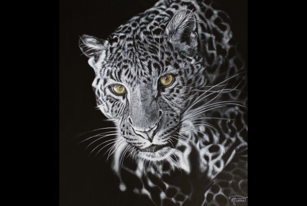 "Séduction", peinture. Huile sur toile Format 40 x 36 pouces. Portrait animalier. Œuvre de Nancy LAVOIE, artiste-peintre, Lauréate du Palmarès. Trophée Européen des Arts et Styles 2024.