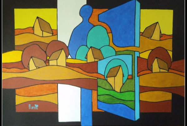 "Silhouette Bleue" peinture (dim. 46 x 65 cms). Acrylique sur toile. Œuvre de Michel MARANT, artiste-peintre, Lauréat du Palmarès. Trophée Européen des Arts et Styles 2024.