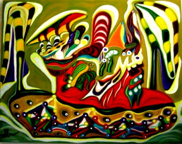 "LE BATEAU" PEINTURE DE NELLY TAPIN HERMOUET - UNE MARINE ISSUE D'UN AILLEURS INEXPLIQUÉ QUE N'ATTEINDRONT JAMAIS LES ACADEMISMES LES PLUS SENSITIFS