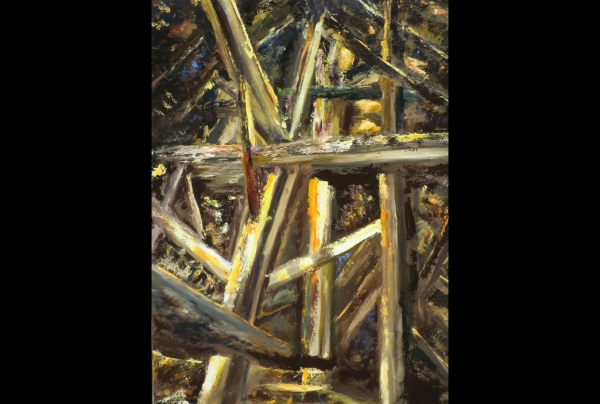 "Lumière – Combles" (116x89cm) huile sur toile techn. brosse et couteau. Œuvre de Michel SKUPIEN Trophée International de la Création dans les Beaux-Arts 2024. Son regard de peintre capte des sujets inattendus et en fait des œuvres étonnantes