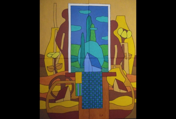 "Souvenirs de Vacances" peinture 122x100cms acrylique sur toile, œuvre de Michel MARANT, Lauréat du Palmarès, Trophée International de la Création dans les Beaux-Arts. Sa peinture innovante, emplie d'élégance a pris son envol bien loin devant.