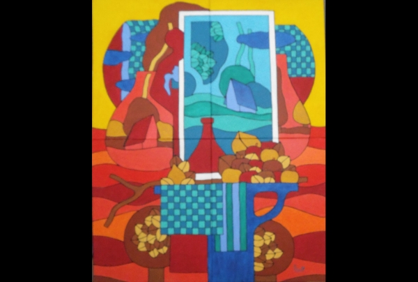 "Souvenirs d'Été" Tableau 122x100cms. Acrylique sur toile œuvre de Michel MARANT artiste peintre contemporain.Lauréat du concours. Une reconstruction esthétique novatrice de l'image en plusieurs plans évocateurs, chacun s'inscrivant dans le tout.