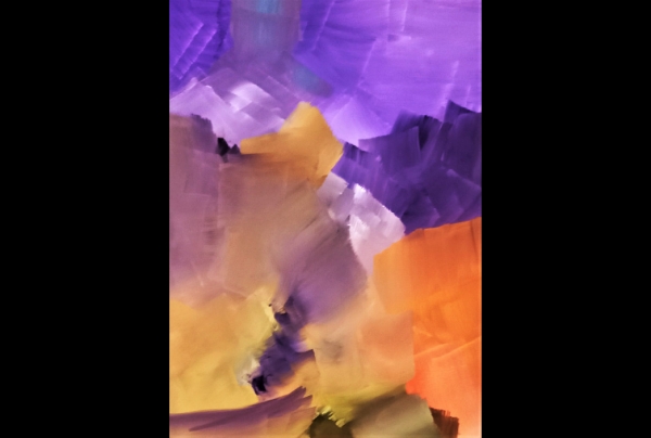 "Senteurs Provençales" Peinture acrylique sur châssis entoilé 70cmx50 cm de Michèle GUILLOT artiste peintre abstraite, Lauréate du Palmarès. L'artiste suggère par son abstraction une traduction picturale subtile des sensations olfactives.