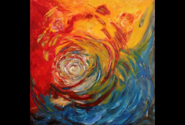"La Palette du Peintre" 2019 Huile sur toile, 80x80cm de Jacques ANDRIESSENS. Sa palette tourbillonnante emplie de mouvement et de couleurs traduit tout ce que l'acte créatif peut préfigurer comme sensations intérieures. Lauréat du Palmarès