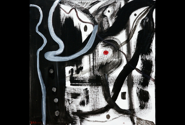 "Création libre, Noir et blanc 2" 2017 Acrylique sur toile 80x80cm de Jacques ANDRIESSENS, Trophée International de la Création dans les Beaux-Arts. Œuvre abstraite où lignes et formes se conjuguent en une harmonie esthétique