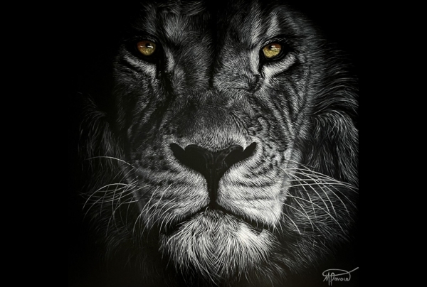 "Noblesse", 76,2x101,6cm, huile sur toile,Juin 2024 de Nancy LAVOIE, Artiste-Peintre Lauréate. Tableau d'un face à face silencieux, l'artiste est une peintre du non-dit, du subtil, elle dépasse l'apparence de l'animal et en restitue l'esprit, l'instinct