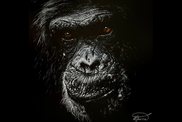 "Sagesse", 76,2x76,2cm, huile sur toile, Juillet 2024 de Nancy LAVOIE. L'Artiste peint avec délicatesse les expressions animalières dont elle détient une maîtrise unique : Elle sait créer dans un regard un mirage fascinant de communication non verbale