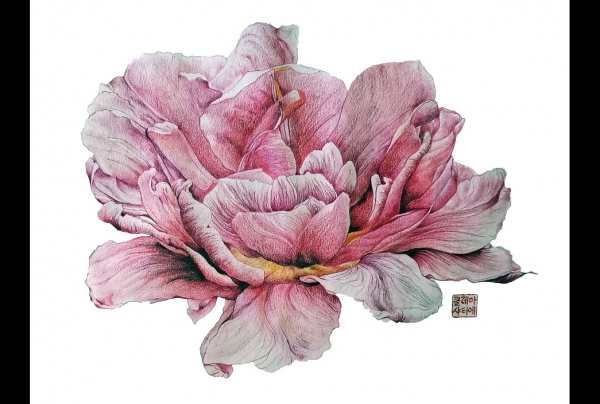 "Tulipe", crayon de couleurs, 42x60 cm, papier canson, 2024, France. Pour CLAIRE.J.CHARTIER le dessin est un style de précision, une recherche esthétique, son thème floral lui permet de s'exprimer avec niveau ultime de sensibilité artistique