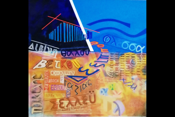 "ATHENES" (100x100cm) peinture abstraite de Gérard SUISSIA , style de paysagisme abstrait urbain. Lauréat des "Trophées des Arts du XXIe Siècle"