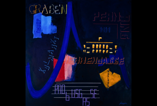 "VIENNE" (100x100cm) peinture abstraite de Gérard SUISSIA , style de paysagisme abstrait urbain. Lauréat des "Trophées des Arts du XXIe Siècle"