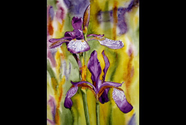 "Libellule ". Aquarelle, 37x27cm. Peindre le floral avec minutie en y ajoutant les ressentis profonds de la beauté colorée de notre monde, comme Claude MONET, Annie d'HERPIN, traduit les émotions sensorielles qui émanent des fleurs.