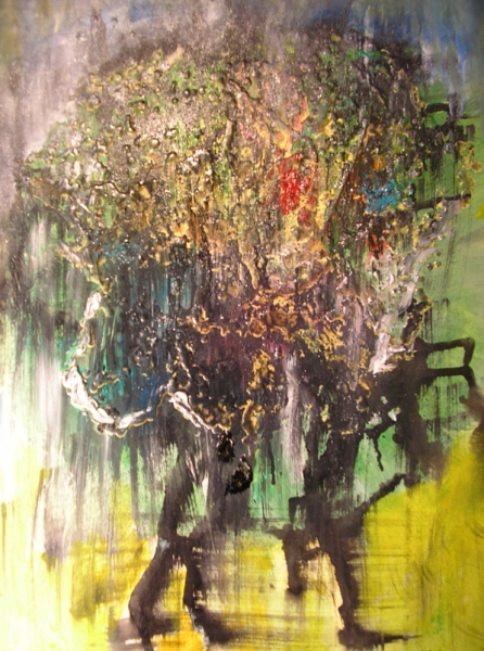 "Swing" peinture abstraite de C-CORIANDRE fait une synthèse esthétique de gestualité, mouvement et aspect matiériste