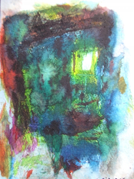 "Au milieu de nulle part, incognito". Oeuvre de la peintre abstraite C-CORIANDRE. Un titre qui atteint un paroxysme allégorique de l'éloignement, de l'effacement de l'individu