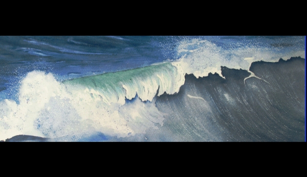 "La Vague" d'Annie d'HERPIN peintre aquarelliste (détail descriptif de l'oeuvre ici analyse du sommet de la vague)