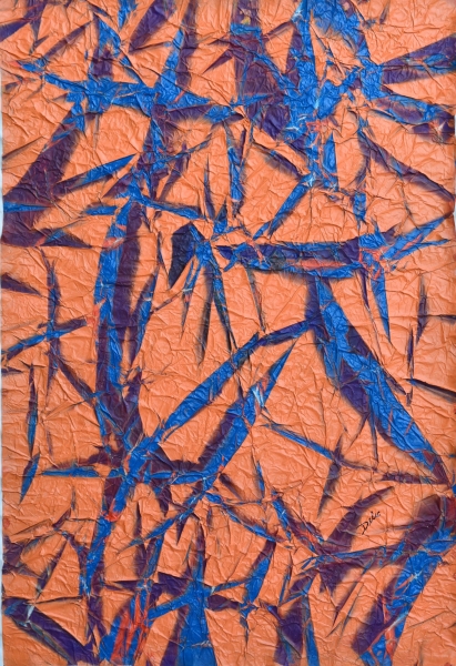 "Turbulence Magnétique" d'Alain DELIC (Huile 130x89cm laqué papier soie plissé sculpté Double support s. toile)
