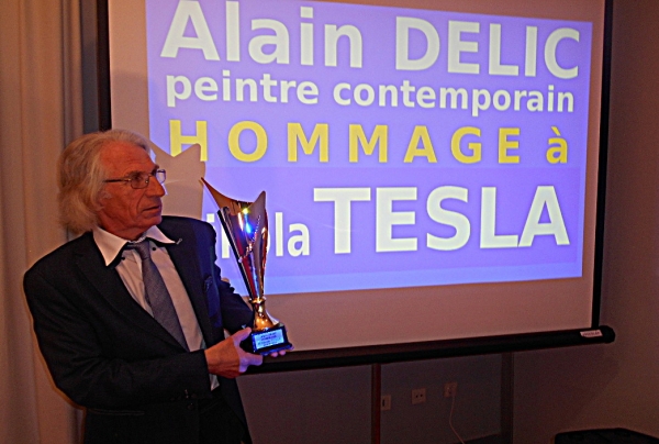 "Hommage européen à Nikola TESLA par le peintre abstrait Alain DELIC" Trophée d'Honneur des Editions EDMC-EUROPE attribué au peintre pour l'hommage rendu au travers de l'exposition de ses peintures