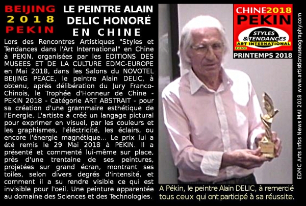 "Actualité des Styles et Tendances dans l'Art International" PEKIN Chine 2018 Alain Delic primé pour l'innovation d'une "Esthétique de l'Energie" dans l'art contemporain, représentant énergie et flux magnétiques par l'abstraction (c) AD-EDMC 2018