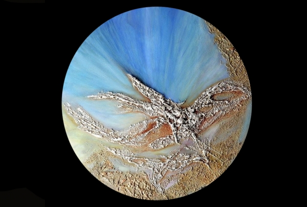 "Europa in Terrarum Orbis" CAZORLA-CAZO Peintre abstrait Huile, matières /toile diam 70cm ép. peint 3cm 2018