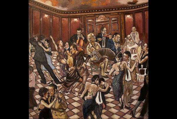 "Le Tango" (Huile sur toile lin 100x100cm 2017) du peintre William FENECH présentée en Chine à Pékin lors du "Styles et Tendances dans l'Art International" Mai 2018