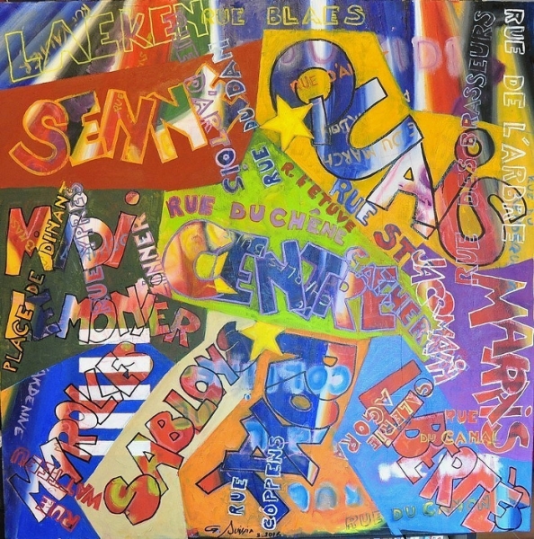 "BRUXELLES" Huile sur toile 100x100cm. Série "Capitales" de Gérard SUISSIA