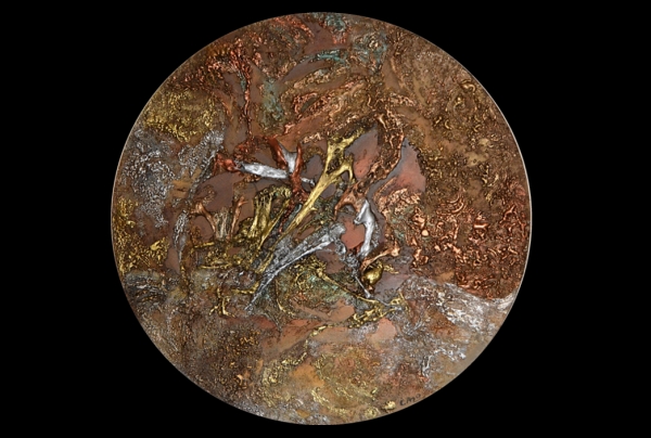 "RADICES TERRAE" Huile et matières sur chassis entoilé Diamètre 90cm épaisseur 3 à 4 cm (2018)