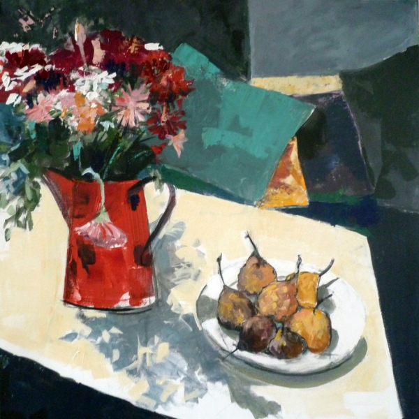 "Nature Morte aux Poires fripées" Acrylique(80 x 80 cm) du peintre Jean-Paul SCHMITT