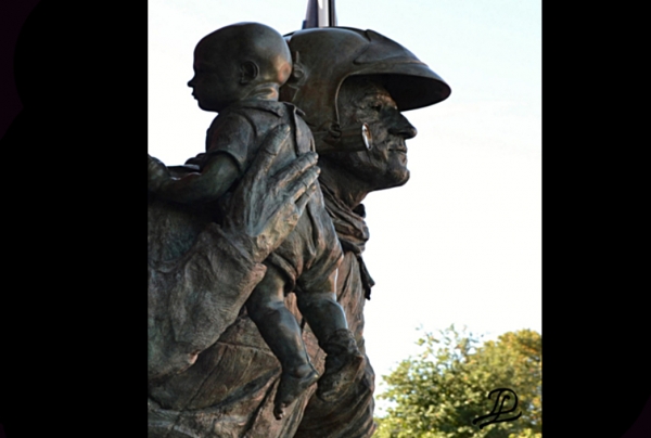 "SAUVETAGE" une vue de côté de l'oeuvre du sculpteur Didier LEMAITRE